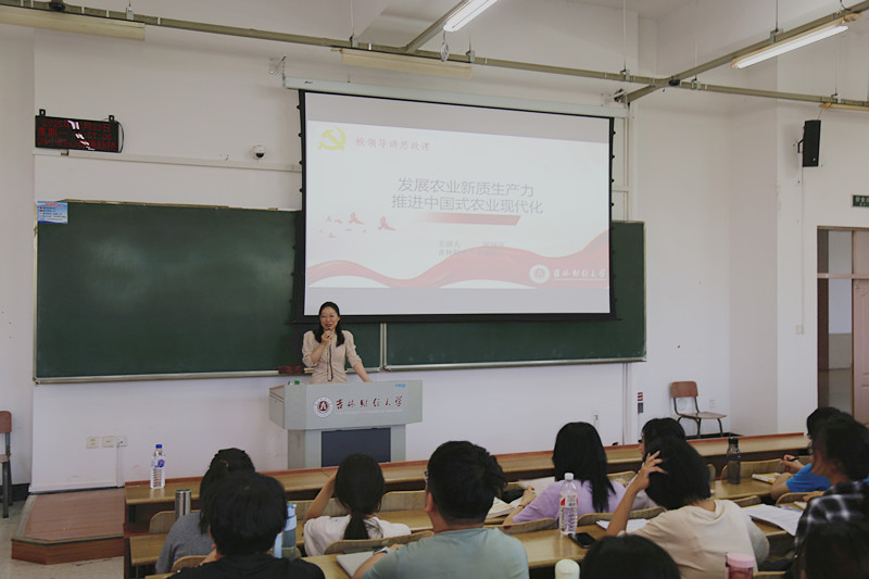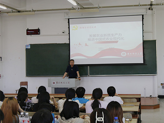 学校副校长祝国平以《发展农业新质生产力 推进中国式农业现代化》为主题,为会计学院的学生上了一堂内涵丰富的思政课。祝国平结合多年来对农村金融、农村经济的研究,从中国式农业现代化的特征、东北地区实现农业现代化的重要意义、农业新质生产力的作用三个方面展开讲解,引领学生深刻理解了马克思主义的人民性特征、人与自然和谐共生、社会主义在实践中开拓进取等相关中国式农业现代化的核心内容。祝国平强调,以人民为中心是党守初心担使命的宝贵经验,习近平总书记坚持把解决好“三农”问题作为全党工作重中之重,举全党全社会之力推动乡村振兴。