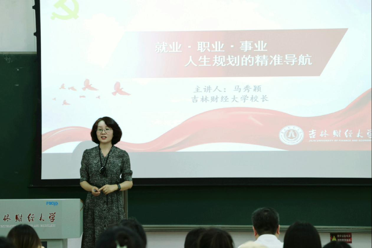 学校党委副书记、校长马秀颖以《就业·职业·事业——人生规划的精准导航》为主题,为工商学院的学生上了一堂有趣、有用、有料、有共鸣的思政课。马秀颖聚焦当前中国就业形势呈现“总量压力趋缓、结构性矛盾突出”的特征,从就业形势、职业准备、事业规划三个方面和学生们分享了人生规划的“精准导航”。马秀颖强调,学生不要成为求职大军的“跟跑”者,而要成为主动就业的“并跑”者,人生事业的“领跑”者。她建议同学们,在求学阶段要“向下扎根,向上成长”;在事业规划上,要辩证看待就业与择业,培育良好的事业心态,树立正确的事业观念,追求高质的事业发展;要为谋求生存而就业、为终身发展而职业、为人生价值而事业。马秀颖殷切嘱托即将步入社会的同学们,要树立梦想从学习开始、事业靠本领成就的观念,让勤奋学习成为青春远航的动力,让增长本领成为青春搏击的能力!