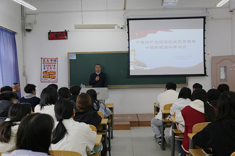 学校党委副书记刘鹤以《中国共产党领导东北抗日联军十四年艰苦斗争简史》为主题,为公共管理学院的学生上了一堂生动的思政课。刘鹤重点讲述了东北抗日联军为东北和全国抗日战争的胜利做出的重要贡献,回顾了中国人民不畏强暴、以身殉国的杰出代表杨靖宇、赵尚志、赵一曼等烈士们的英勇事迹和牺牲精神。刘鹤强调,东北抗联精神在今天仍然具有重要的现实意义,作为新时代大学生更要努力传承和弘扬。