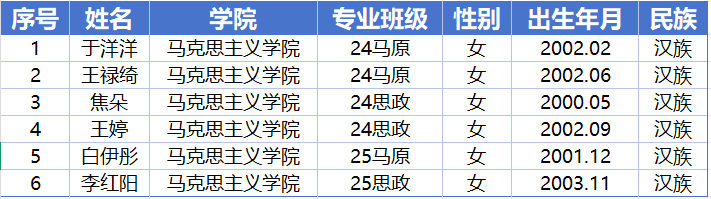 根据学校关于推荐积极分子参加党课培训的通知,经学院研究生党支部支委会酝酿提名、综合考评,党委审核确认,拟推荐于洋洋等6名积极分子参加此次党课培训,具体名单见下表(按学号排序):