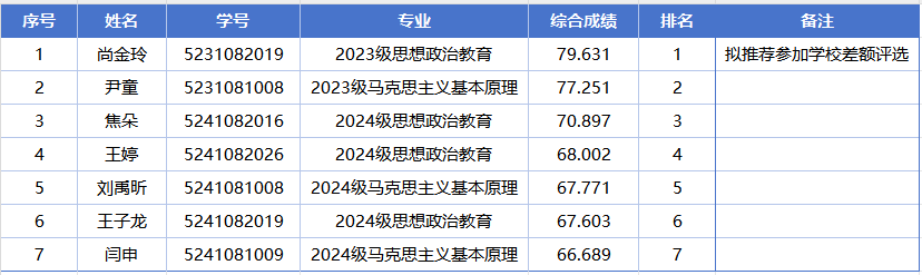 根据学校相关文件精神,经学生本人申请、学院资格审核、评审小组评审,现将我院2025年申报国家奖学金学生评审排序结果公示如下: